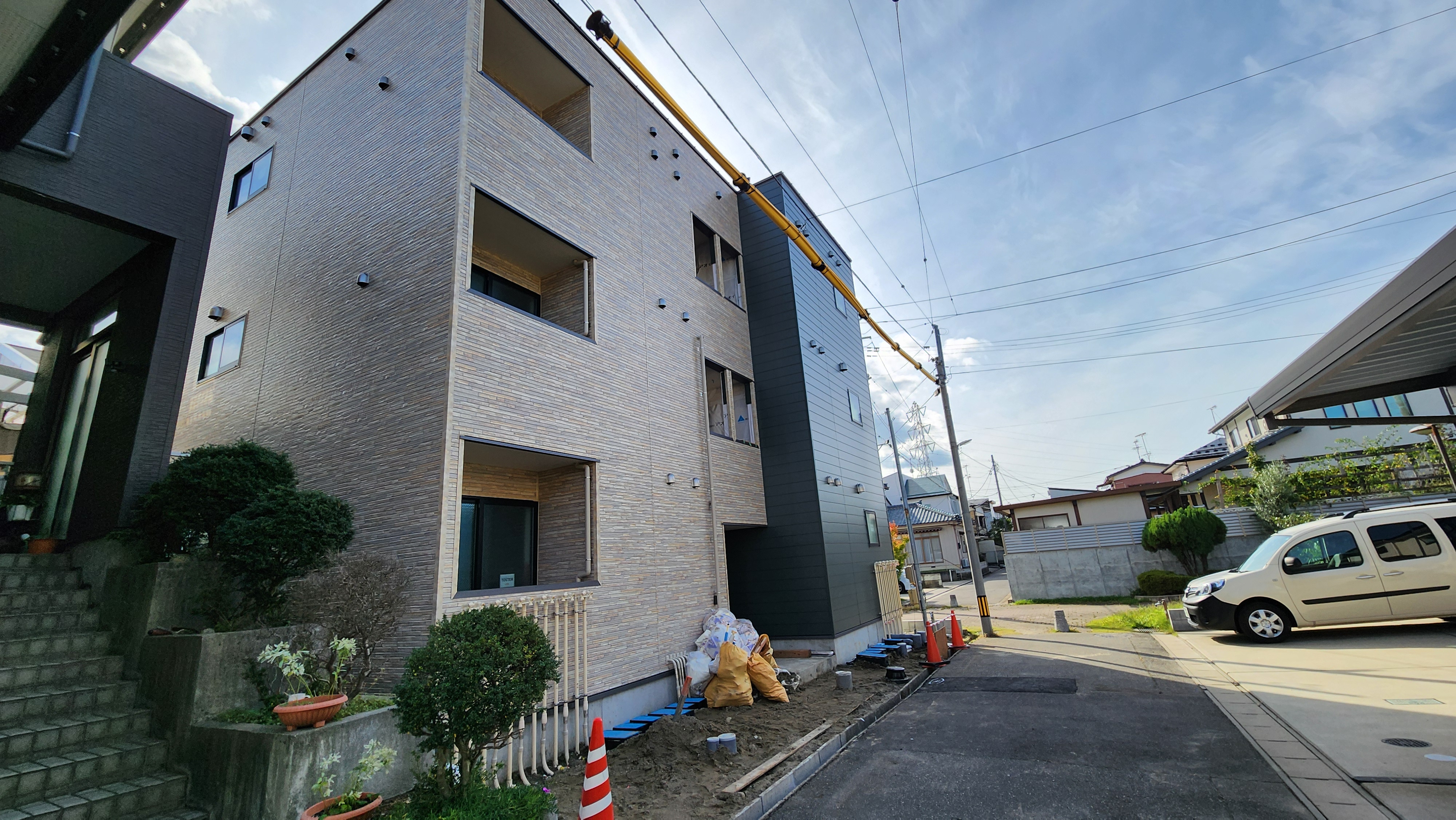 弊社で受注頂き、携わっています、3階建てアパートの新築工事はもう少しで工事完了となります。